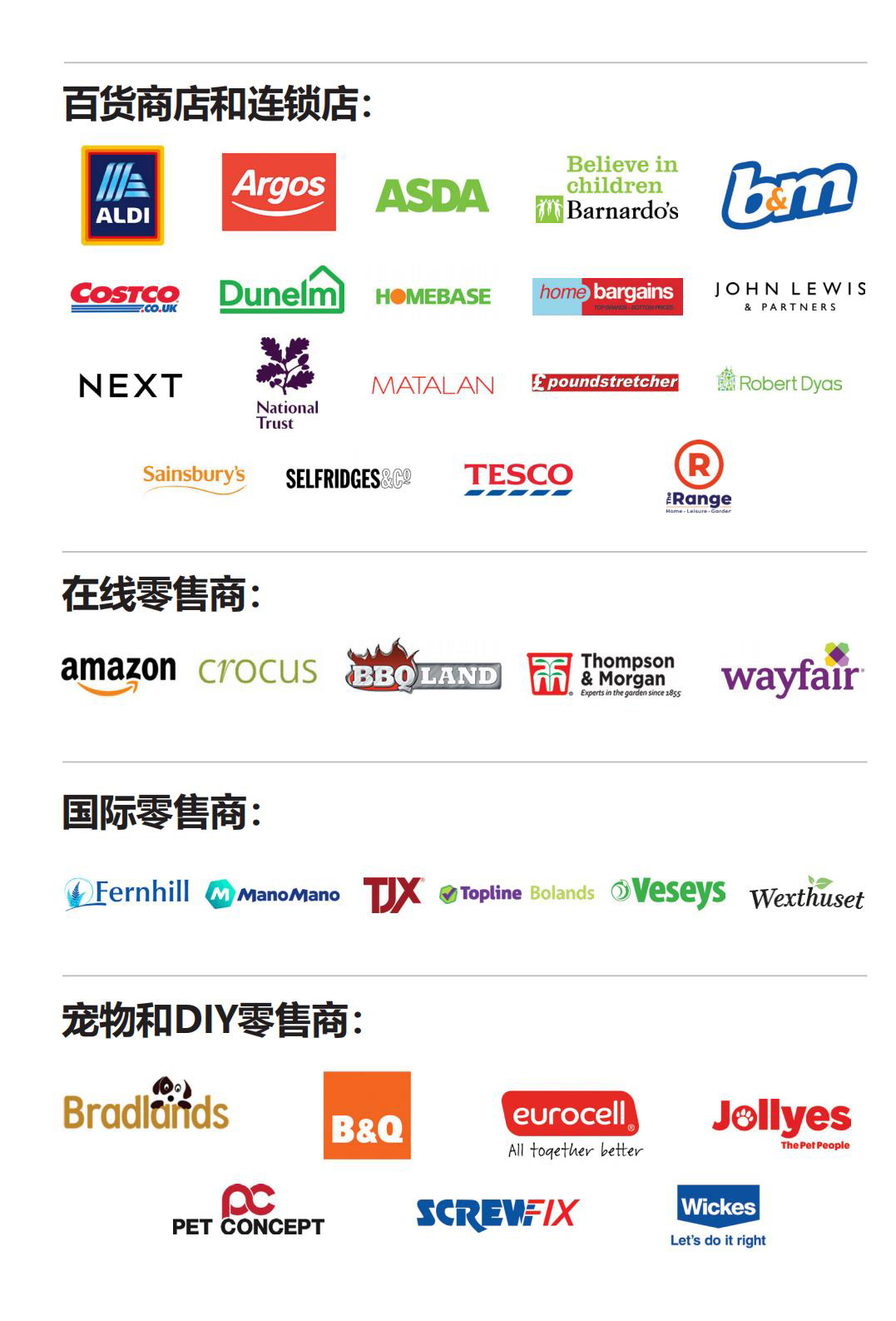 Retail Experience & Services 零售服務(wù)區(qū):零售體驗(yàn)和服務(wù),界面、網(wǎng)站設(shè)計(jì)、電子商務(wù)、商店裝備及技術(shù)解決方案、花園中心陳列、花園中心商店設(shè)計(jì)及裝修