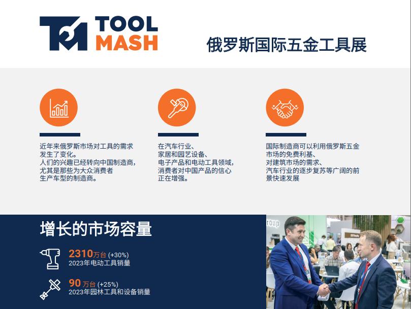 俄羅斯國際五金展覽會(huì)Toolmash是由世界著名展覽公司英國國際貿(mào)易與展覽有限公司ITE Group Plc主辦,一年一屆在俄羅斯舉行,是一個(gè)五金制品及工具、花園工具的專項(xiàng)展覽會(huì),該展是在俄羅斯及東歐地區(qū)具有較強(qiáng)影響力的專業(yè)展會(huì)。